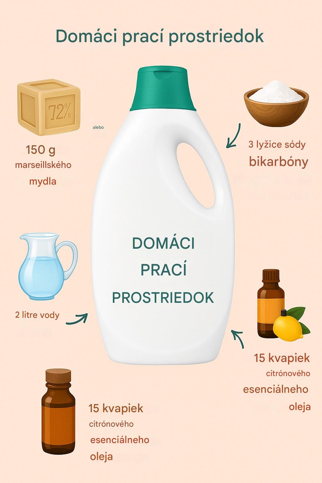 Na prípravu vašej domácej práčky budete potrebovať nasledujúce ingrediencie: